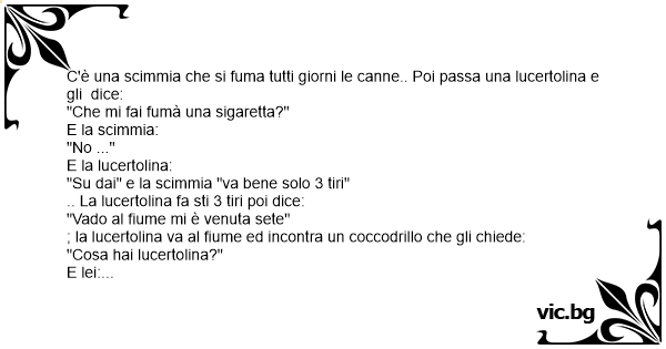 C'è una scimmia che si fuma tutti giorni le canne.. Poi passa una lucertolina e gli dice: