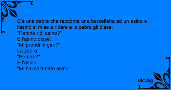 C'è una zebra che racconta una barzelletta ad un asino e l'asino si mise a ridere e la zebra gli disse: