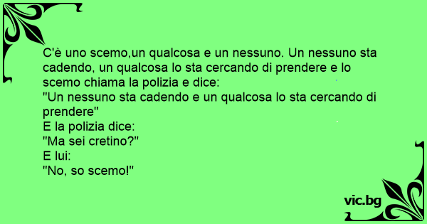 C'è uno scemo,un qualcosa e un nessuno. Un nessuno sta cadendo, un qualcosa lo sta cercando di prendere e lo scemo chiama la polizia e dice: