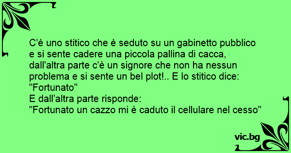 C'è uno stitico che è seduto su un gabinetto pubblico e si sente cadere una piccola pallina di сасса, dall'altra parte c'è un signore che non ha nessun problema e si sente un bel plot!.. E lo stitico dice:
