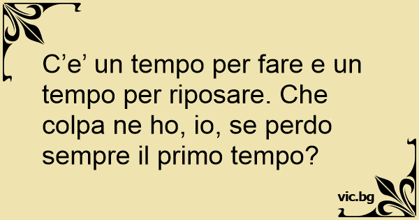C’e’ un tempo per fare e un tempo per riposare. Che colpa ne hо, io, se perdo sempre il primo tempo?