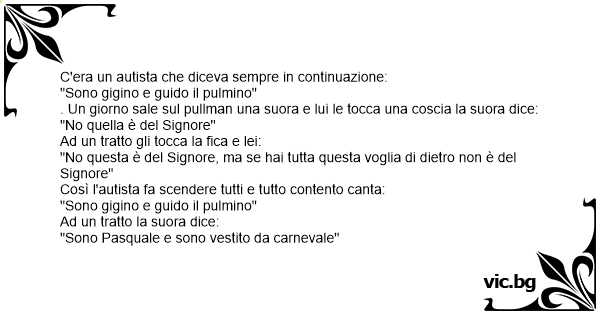 . Un giorno sale sul pullman una suora e lui le tocca una coscia la suora dice: