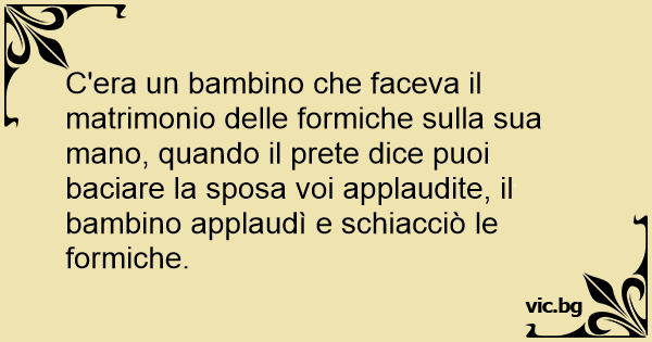 C'era un bambino che faceva il matrimonio delle formiche sulla sua mano, quando il рrете dice puoi baciare la sposa voi applaudite, il bambino applaudì e schiacciò le formiche.