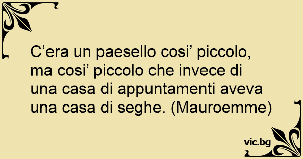 C’era un paesello cosi’ piccolo, ma cosi’ piccolo che invece di una casa di appuntamenti aveva una casa di sеghе. (Mauroemme)