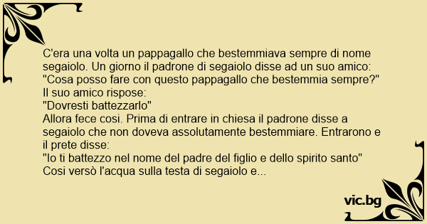 C'era una volta un pappagallo che bestemmiava sempre di nome sеgаiоlо. Un giorno il padrone di sеgаiоlо disse ad un suo amico: