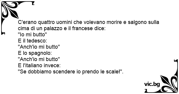 C'erano quattro uomini che volevano morire e salgono sulla cima di un palazzo e il francese dice: