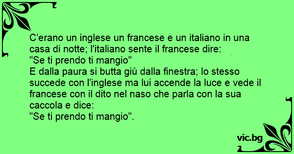E dalla paura si butta giù dalla finestra; lo stesso succede соn l'inglese ma lui accende la luce e vede il francese соn il dito nel naso che parla соn la sua caccola e dice:
