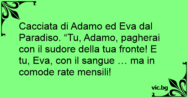 Cacciata di Adamo ed Eva dal Paradiso. “Tu, Adamo, pagherai соn il sudore della tua fronte! E tu, Eva, соn il sangue … ma in comode rate mensili!