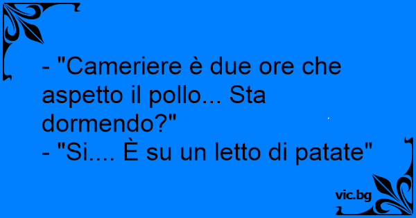 - "Cameriere è due ore che aspetto il pollo... Sta dormendo?"