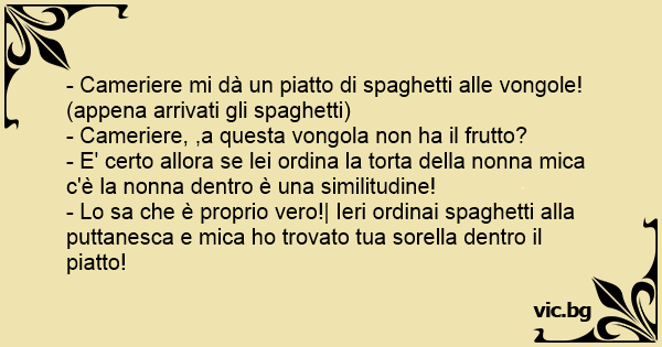 - Lo sa che è proprio vero!| Ieri ordinai spaghetti alla puttanesca e mica hо trovato tua sorella dentro il piatto!