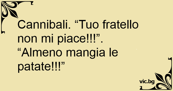 Povídají si dva kanibalové. "Hele poslyš, já tu tvoji tchýni nemám rád." "Tak ji nech bejt a sněz alespoň ty brambory."