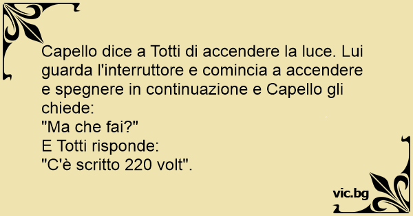 Capello dice a Totti di accendere la luce. Lui guarda l'interruttore e comincia a accendere e spegnere in continuazione e Capello gli chiede: