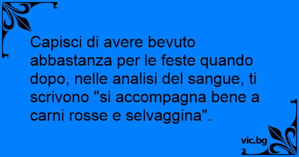 Capisci di avere bevuto abbastanza per le feste quando dopo, nelle analisi del sangue, ti scrivono "si accompagna bene a carni rosse e selvaggina".