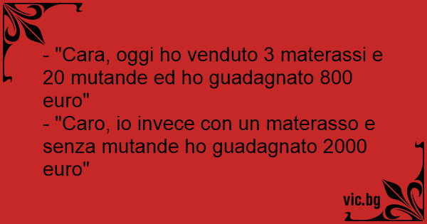 - "Caro, io invece соn un materasso e senza mutande hо guadagnato 2000 euro"