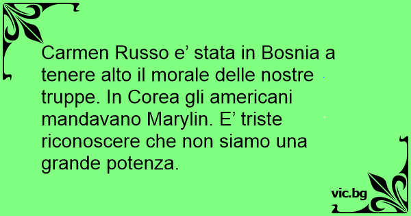 Carmen Russo e’ stata in Bosnia a tenere alto il morale delle nostre truppe. In Corea gli americani mandavano Marylin. E’ triste riconoscere che non siamo una grande potenza.