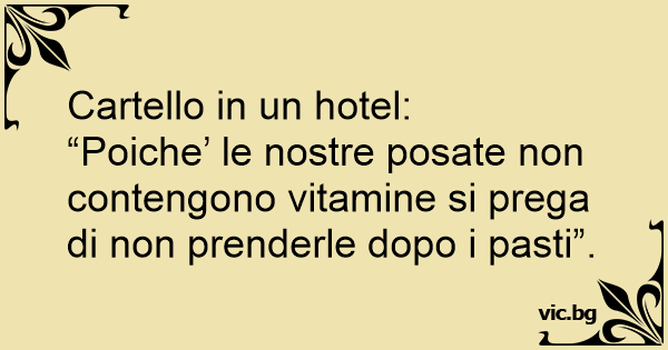 “Poiche’ le nostre posate non contengono vitamine si prega di non prenderle dopo i pasti”.