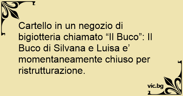 Cartello in un negozio di bigiotteria chiamato “Il Buco”: Il Buco di Silvana e Luisa e’ momentaneamente chiuso per ristrutturazione.