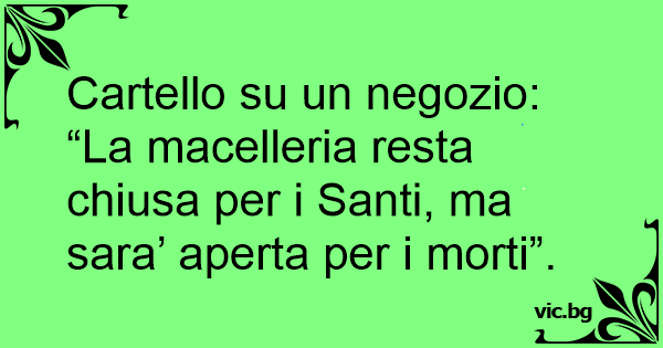 “La macelleria resta chiusa per i Santi, ma sara’ aperta per i morti”.
