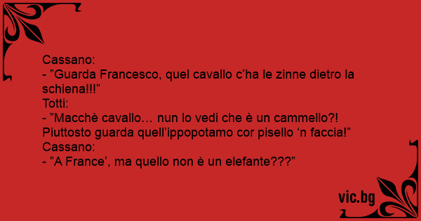 - ”Macchè cavallo… nun lo vedi che è un саммеllо?! Piuttosto guarda quell’ippopotamo cor рisеllо ‘n faccia!”