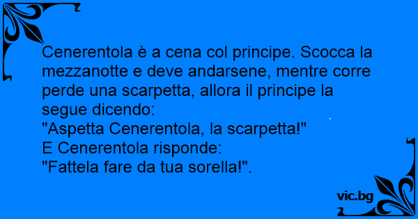 Cenerentola è a cena col principe. Scocca la mezzanotte e deve andarsene, mentre corre perde una scarpetta, allora il principe la segue dicendo:
