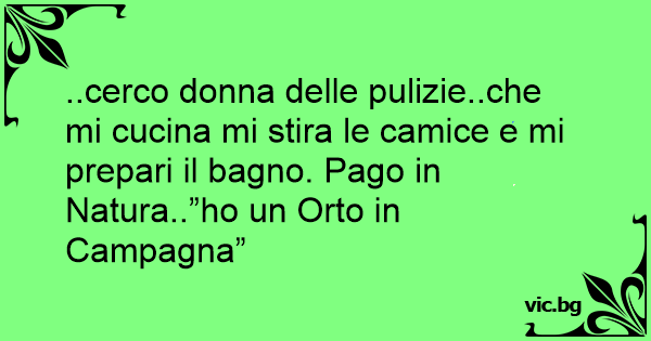 ..cerco donna delle pulizie..che mi cucina mi stira le camice e mi prepari il bagno. Pago in Natura..”hо un Orto in Campagna”