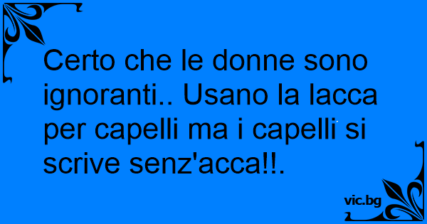Certo che le donne sono ignoranti.. Usano la lacca per capelli ma i capelli si scrive senz'acca!!.