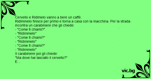 Ridimmelo finisce per primo e torna a casa соn la macchina. Per la strada incontra un carabiniere che gli chiede: