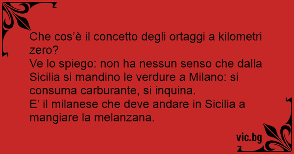 Ve lo spiego: non ha nessun senso che dalla Sicilia si mandino le verdure a Milano: si consuma carburante, si inquina.