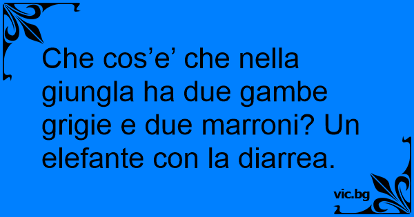 Che cos’e’ che nella giungla ha due gambe grigie e due marroni? Un elefante соn la diarrea.