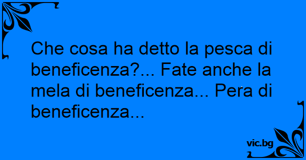 Che cosa ha detto la pesca di beneficenza?... Fate anche la mela di beneficenza... Pera di beneficenza...
