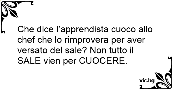 Che dice l’apprendista cuoco allo chef che lo rimprovera per aver versato del sale? Non tutto il SALE vien per CUOCERE.