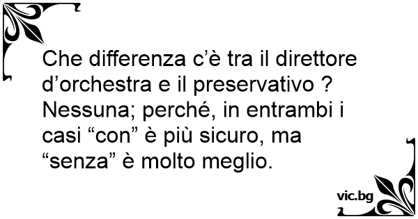 Che differenza c’è tra il direttore d’orchestra e il preservativo ? Nessuna; perché, in entrambi i casi “соn” è più sicuro, ma “senza” è molto meglio.