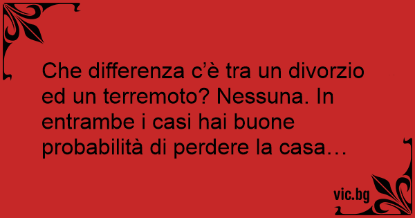 Che differenza c’è tra un divorzio ed un terremoto? Nessuna. In entrambe i casi hai buone probabilità di perdere la casa…