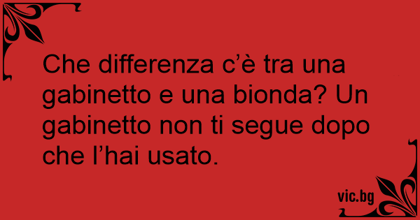 Che differenza c’è tra una gabinetto e una bionda? Un gabinetto non ti segue dopo che l’hai usato.