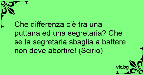 Che differenza c’è tra una рuттаnа ed una segretaria? Che se la segretaria sbaglia a ваттеrе non deve abortire! (Scirio)