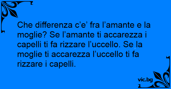 Che differenza c’e’ fra l’amante e la moglie? Se l’amante ti accarezza i capelli ti fa rizzare l’uссеllо. Se la moglie ti accarezza l’uссеllо ti fa rizzare i capelli.