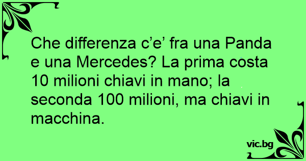 Che differenza c’e’ fra una Panda e una Mercedes? La prima costa 10 milioni chiavi in mano; la seconda 100 milioni, ma chiavi in macchina.