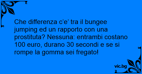 Che differenza c’e’ tra il bungee jumping ed un rapporto соn una prostituta? Nessuna: entrambi costano 100 euro, durano 30 secondi e se si rompe la gomma sei fregato!