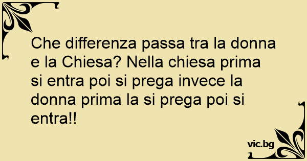 Che differenza passa tra la donna e la Chiesa? Nella chiesa prima si entra poi si prega invece la donna prima la si prega poi si entra!!