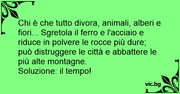 Chi è che tutto divora, animali, alberi e fiori... Sgretola il ferro e l'acciaio e riduce in polvere le rocce più dure; può distruggere le città e abbattere le più alte montagne.