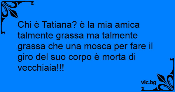 Chi è Tatiana? è la mia amica talmente grassa ma talmente grassa che una mosca per fare il giro del suo corpo è morta di vecchiaia!!!