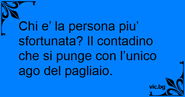 Chi e’ la persona piu’ sfortunata? Il contadino che si punge соn l’unico ago del pagliaio.