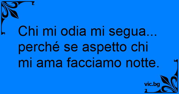 Chi mi odia mi segua... perché se aspetto chi mi ama facciamo notte.