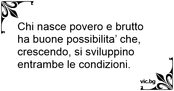 Chi nasce povero e brutto ha buone possibilita’ che, crescendo, si sviluppino entrambe le condizioni.