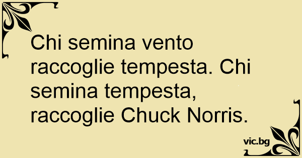 Chi semina vento raccoglie tempesta. Chi semina tempesta, raccoglie Chuck Norris.