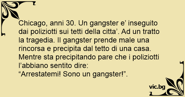 Chicago, anni 30. Un gangster e’ inseguito dai poliziotti sui tetti della citta’. Ad un tratto la tragedia. Il gangster prende male una rincorsa e precipita dal tetto di una casa. Mentre sta precipitando pare che i poliziotti l’abbiano sentito dire: