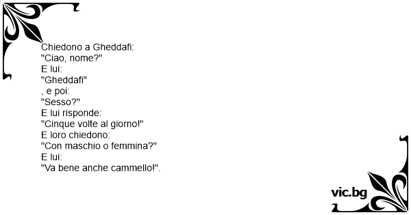 All’Ufficio Immigrazioni: – Nome? – Mhoamhed. – Sesso? – 5 volte alla settimana. – Ma non in quel senso: maschio o femmina? – No importa, a volte anche con cammelli.