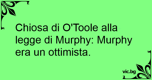 Chiosa di O'Toole alla legge di Murphy: Murphy era un ottimista.