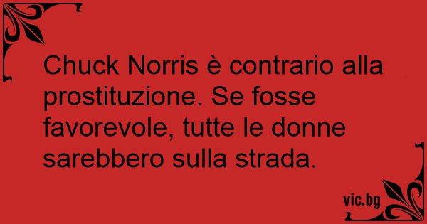 Chuck Norris è contrario alla prostituzione. Se fosse favorevole, tutte le donne sarebbero sulla strada.