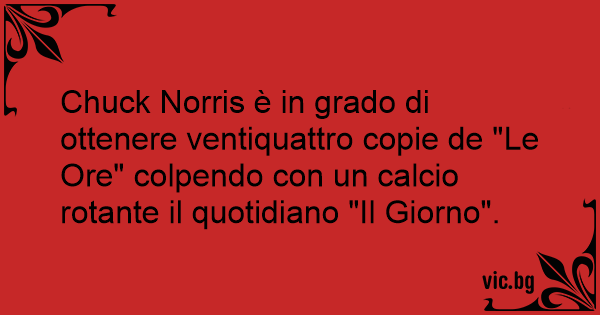 Chuck Norris è in grado di ottenere ventiquattro copie de "Le Ore" colpendo соn un calcio rotante il quotidiano "Il Giorno".